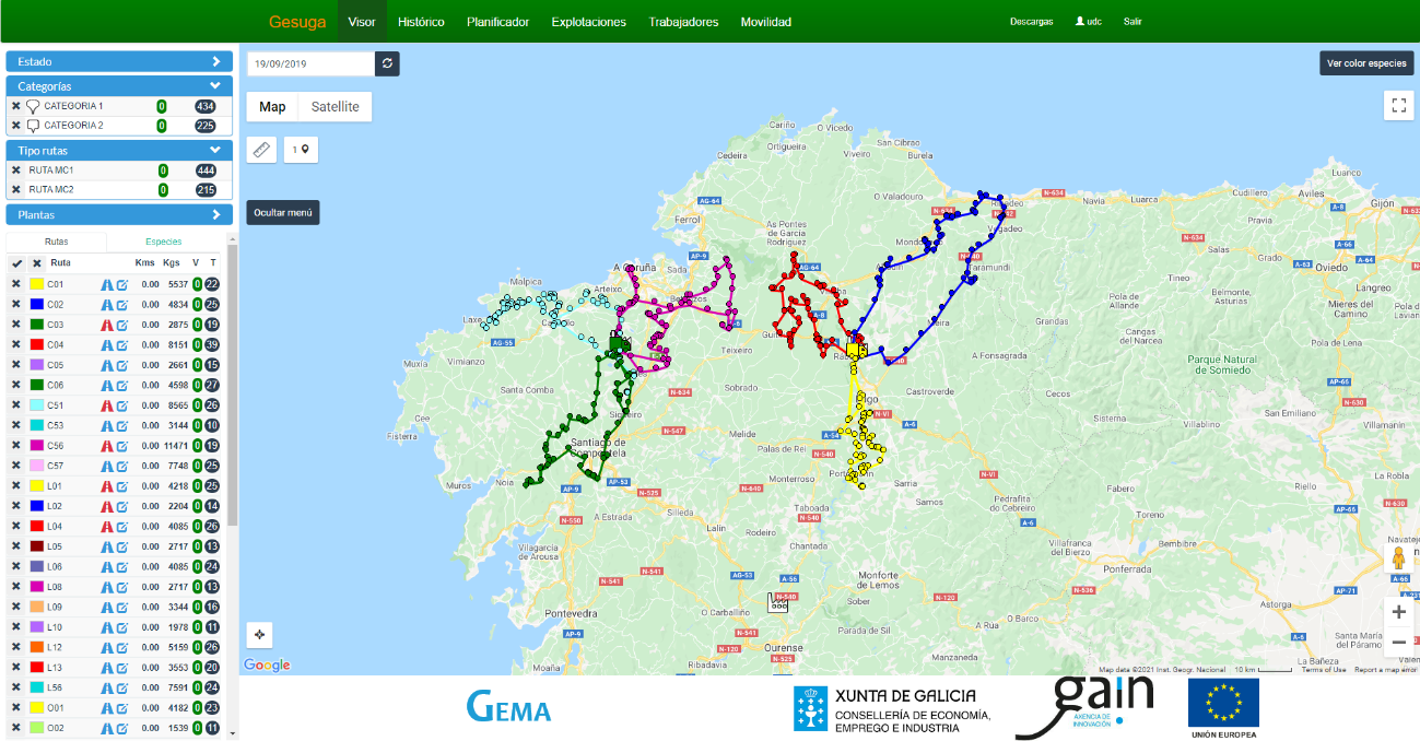 Se ha diseñado e implementado una aplicación que accede la información histórica de las trayectorias de todos los camiones en cualquiera data del pasado y facilita la explotación de la información sobre las rutas realizadas y las actividades y el tiempo dedicado la cada una de ellas.